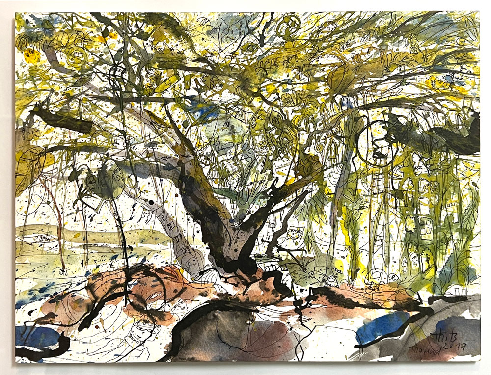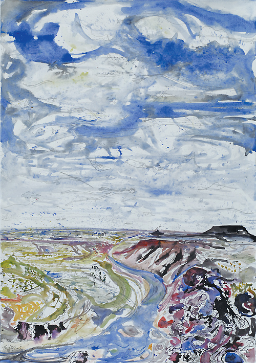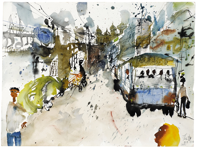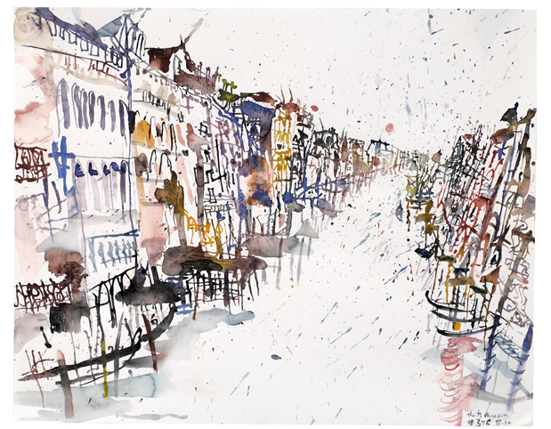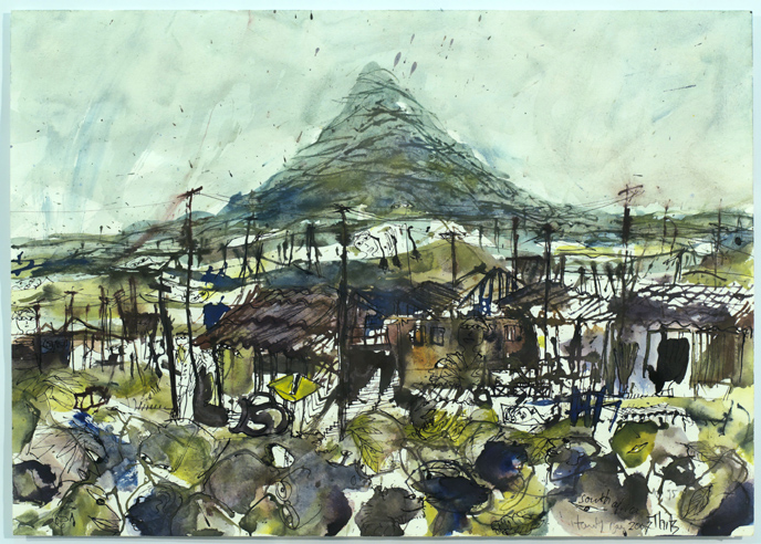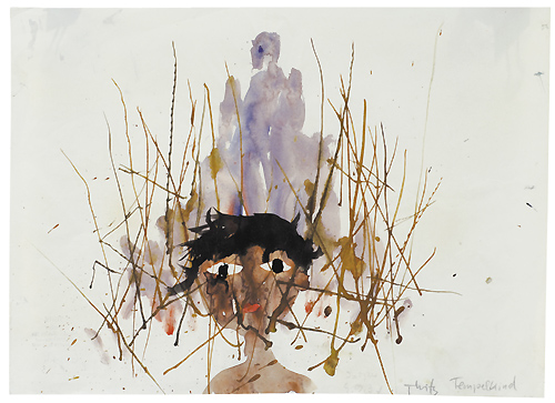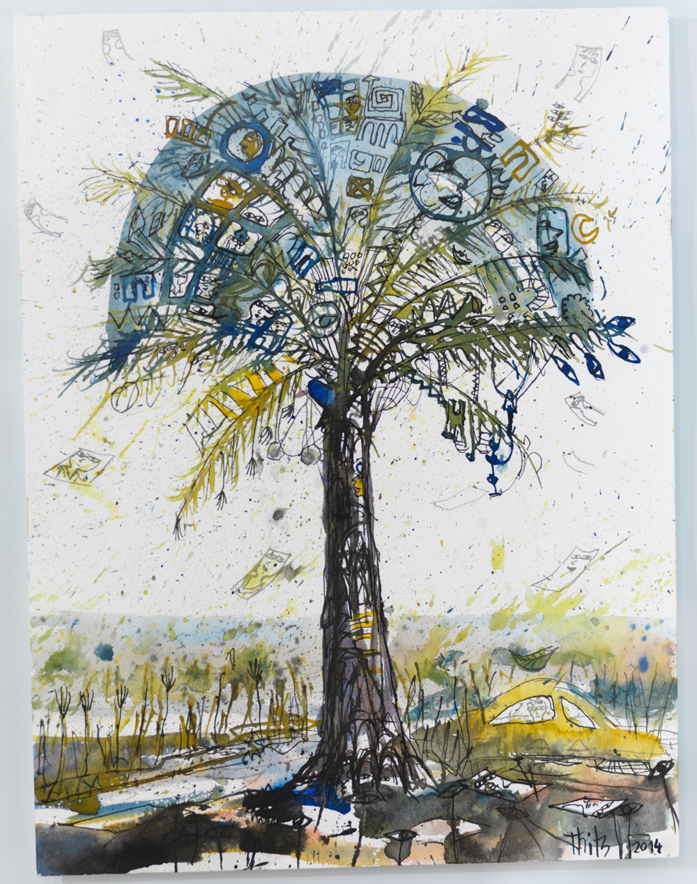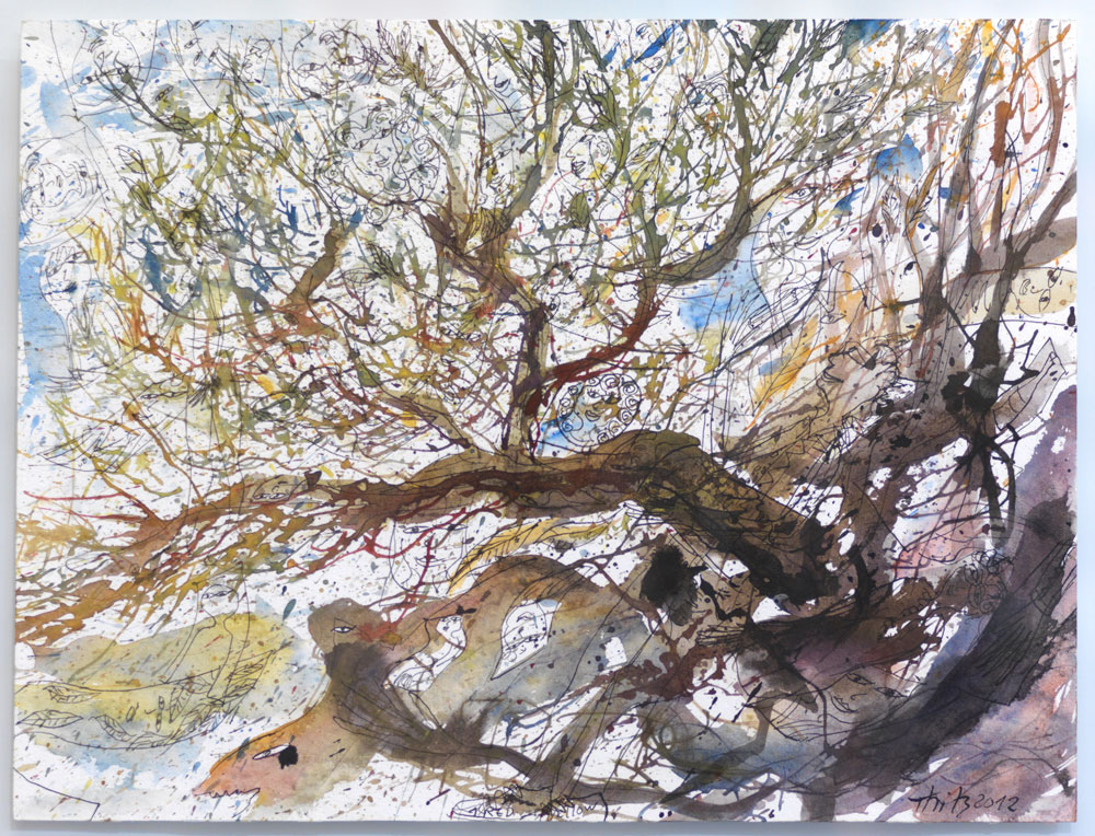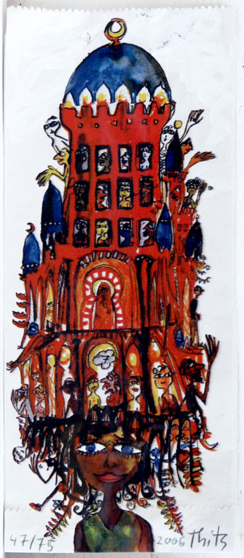 Artist's screen print with different overpaintings,( 2010-2014 ) on Hahnemühle handmade paper and bags