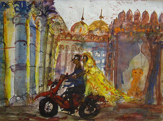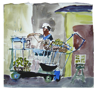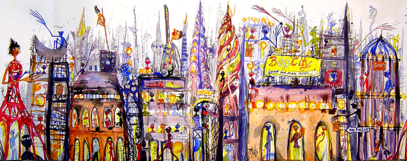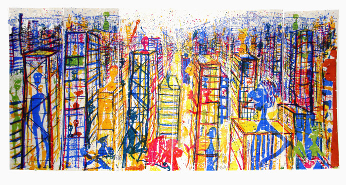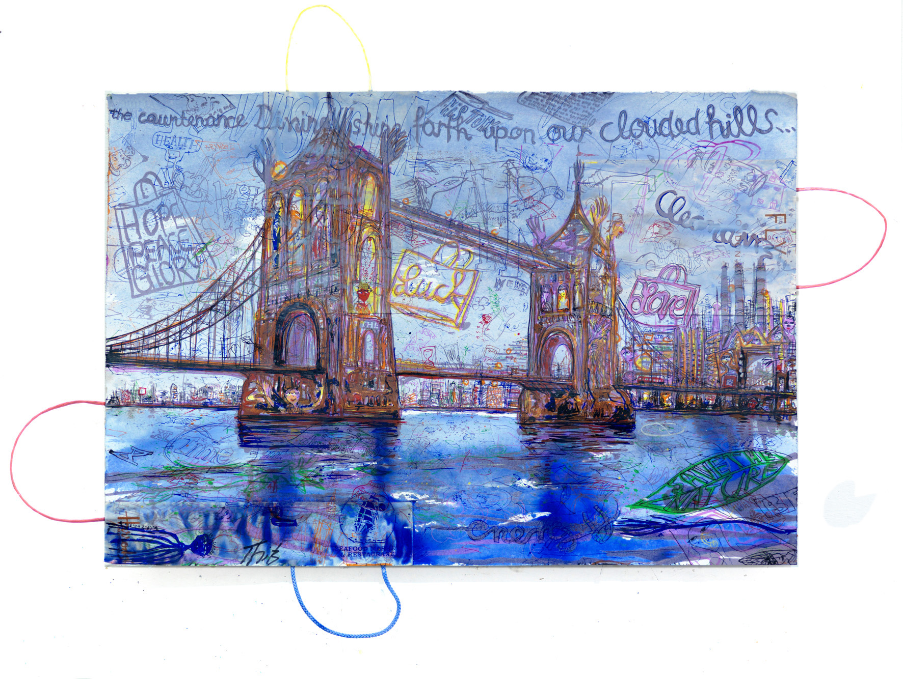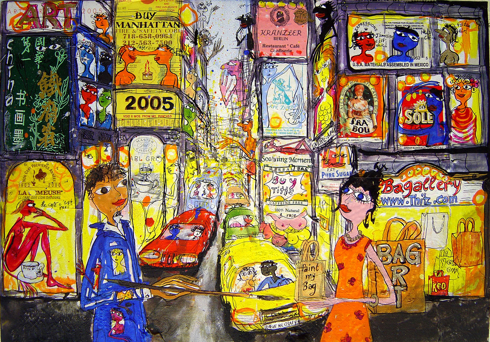 Artist's screen print with current overpaintings,on Hahnemühle handmade paper and bags