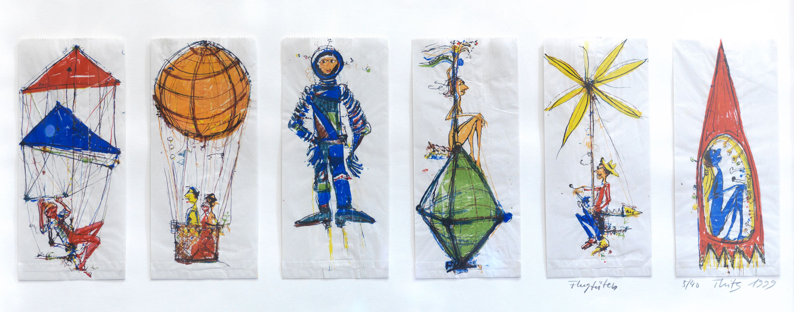 Screenprint on 6 bags on passepartout cardboard, 1999
