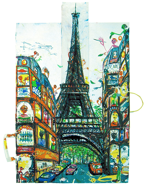 Artist's screen print on bags and passe-partout cardboard, 2001