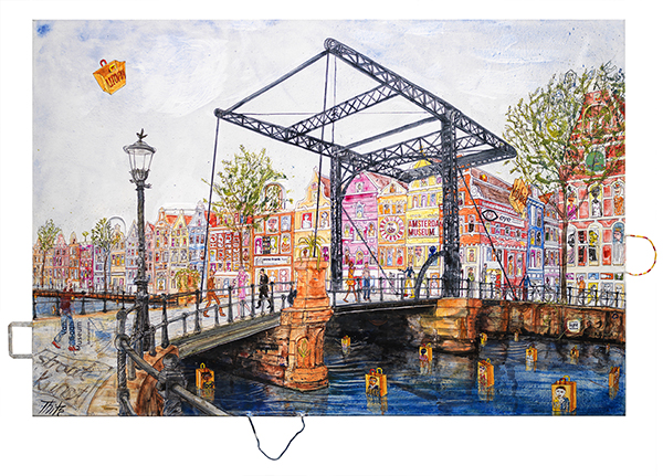 Thitz (1962) is een meester in het schilderen van een levendig stadslandschap. New York, Tokyo, Barcelona, Amsterdam, London, hij schilderde alle grote metropolen in acryl en inkt over 'papieren tasjes' op canvas. De handvatten steken aan de rand van het beeld uit als identificatietegels. De ‘ tassen’ reizen van Thitz nemen ons mee naar verre landen en tijden waar we luchtig en zonder tijdsdruk kunnen reizen. Zijn schilderijen worden wereldwijd geëxposeerd.