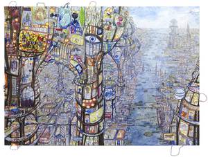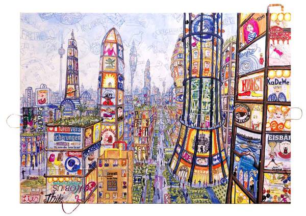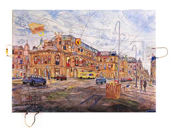 The "Bag Cities” series was Thitz breakthrough- 20 years ago. Then his exhibition in Frankfurt was sold out in 3 days. In the meantime, his ” bag-art” is in demand worldwide. New ideas and series enrich Thitz's oeuvre and aroused the interest of museums, collectors and curators. In cooperation with the Karlsruhe Neue Kunst Gallery some wonderful works have now been compiled for the exhibition in Vienna. Seoul, New York, London, Paris, Venice and Vienna become now Bag Cities. The new series "Utopian Civilizations" will be present and the work, "Cloud City" which already transcends it.