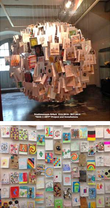The Bags were part of an art-installation by Thitz from 21. th March 2014 until 11.th April 2014 at the Museum of Arts Kunstmuseum Solingen and in the municipal Library.At the Museum a documental presentation of the other Bag-ArtGlobal Projects was shown. .