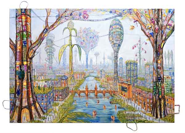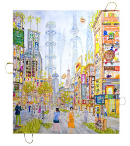 Unfassbar detailliert erforscht der Künstler hier eine traumhafte Zukunft, in welcher Mensch und Natur wieder im Einklang leben. Zum Sky-Tree in Tokio gesellen sich noch weitere echte Himmelsbäume welche als Ersatz für die Betonhochhäuser das CO2 Problem und die Überhitzung der Städte gleichzeitig lösen. Wie immer stehen bei Thitz die Menschen im Vordergrund, und seine unerschütterlich optimistische Weltsicht beflügelt uns, an eine positive Zukunft zu glauben.