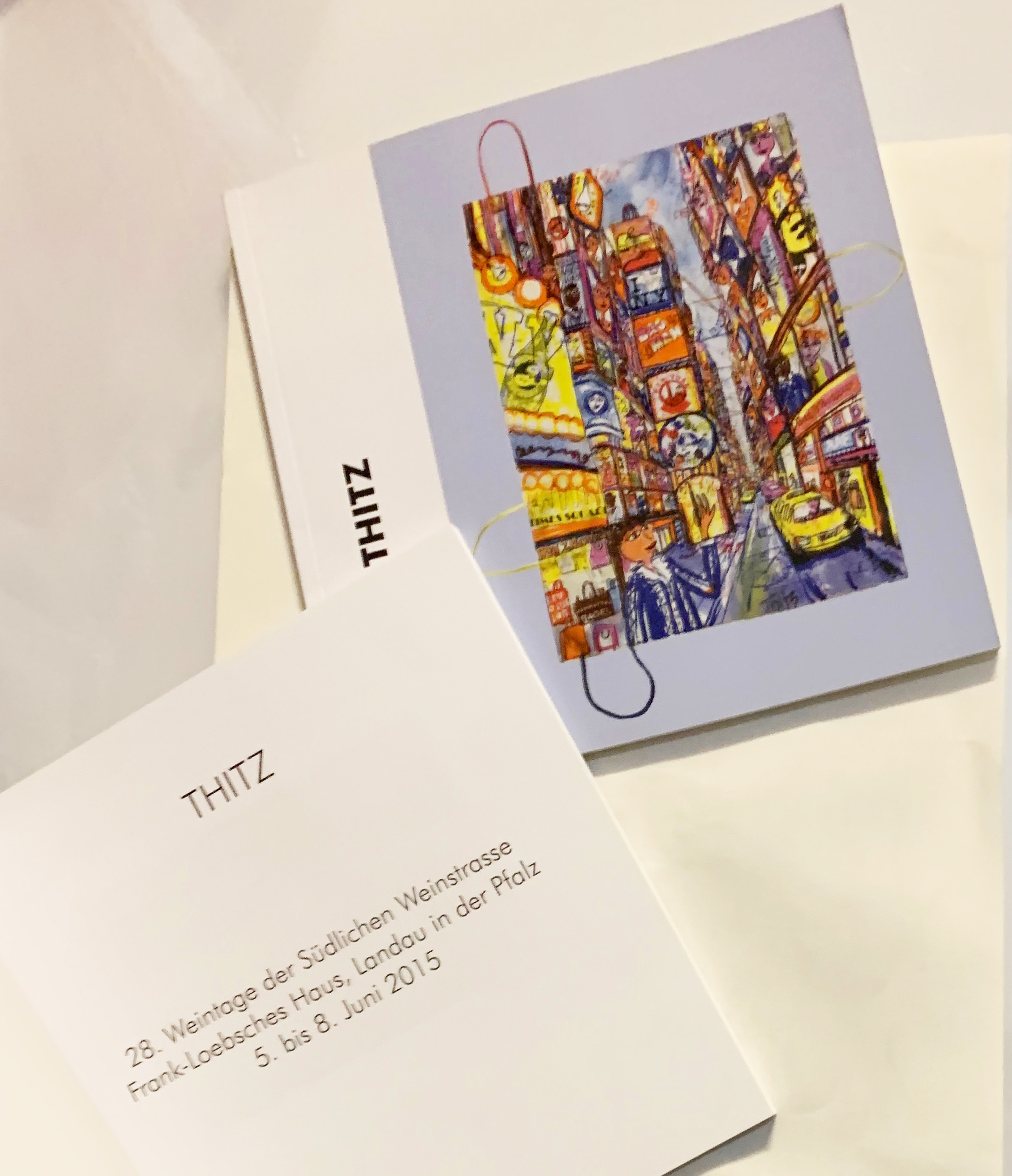 The illustrated book was published on the occasion of the exhibition of Thitz Werken in Landau on the occasion of the Weintage | 4.6.-9.6.2015 | Publisher Verein südliche Weinstrasse e.V. in cooperation with Neue Kunst Gallery, Start of the bag project with the municipal gallery Kunstverein Villa Streccius Landau.