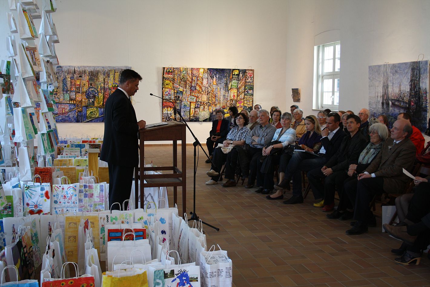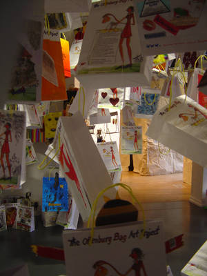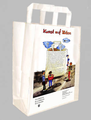 Wie viel Kunst steckt in unserer Stadt? War die Frage : Er forderte alle Erfurter auf: Gestaltet Papiertüten, bemalt sie oder laßt Euch etwas anderes einfallen! Macht sie zu Bag-Art! Der Rücklauf war erstaunlich- in relativ kurzer Zeit kamen über 1100 zum Teil sehr kreativ bemalte Tüten im Museum an.