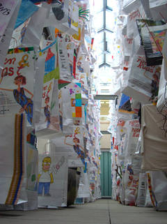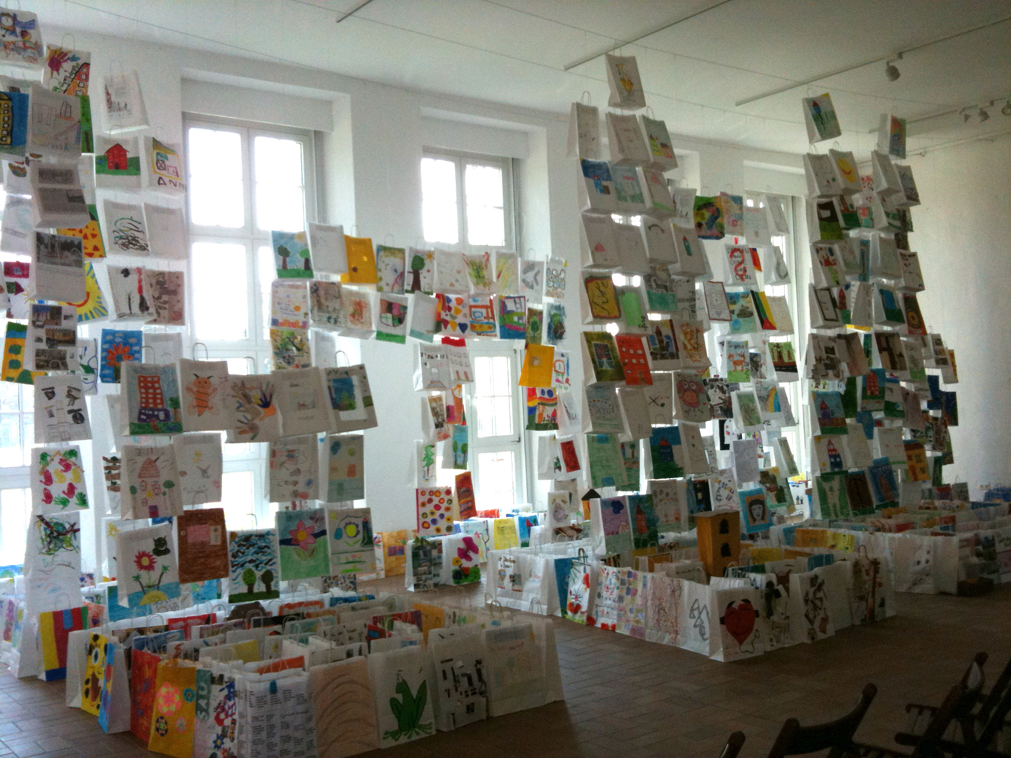 So konnte Thitz nicht nur diese sehr schöne "Tütenwelt" Installation (Durchmesser ca 3m) im Museum aufbauen sogar nach 2 weiteren Installationen als "Wandbild " und "Vorhang" waren immer noch so viele Tüten übrig dass sie überall im Museum verteilt wurden um wirklich alle zeigen zu können.