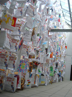 Weitere Tüten große Tüteninstallation in der Stadtbibliothek Solingen
