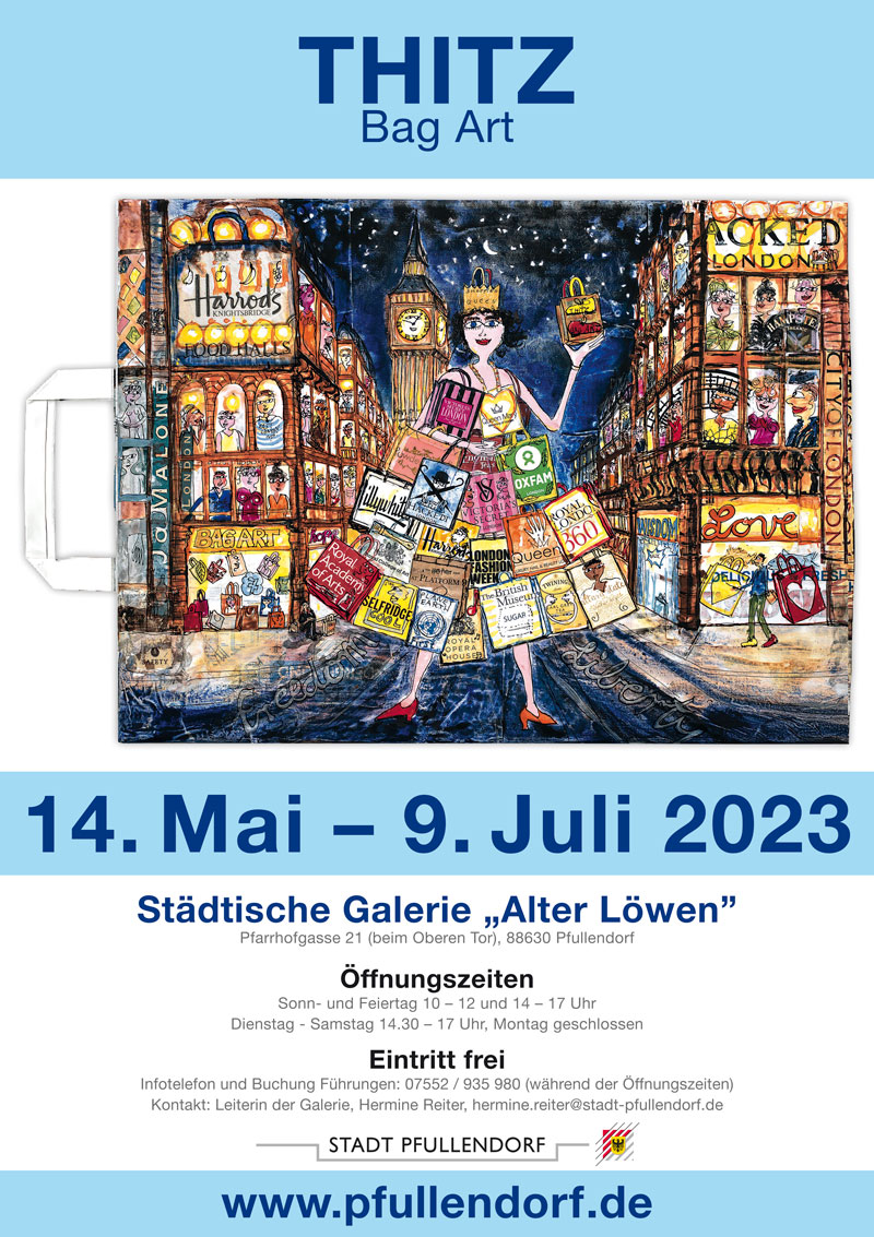 Auf 3 Stockwerken präsentiert der Kunstverein einen Querschnitt durch das komplette Oeuvre von Thitz. Neben den Leinwandarbeiten gibt es einen Rundgang durch das grafische Werk, Papierarbeiten und Installationen aus Objekten und Tüten. Das Tütenprojekt war auch in Herborn sehr erfolgreich -