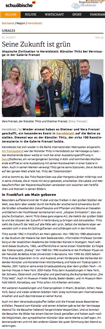 Seine Bilder zeigen Blühende Stadt Landschaften Die Visionen von .Thitz. könnten ein Modell sein für unsere Zukunft für ein Miteinander mit Stadt und Natur und Menschen vieler Nationalitäten.