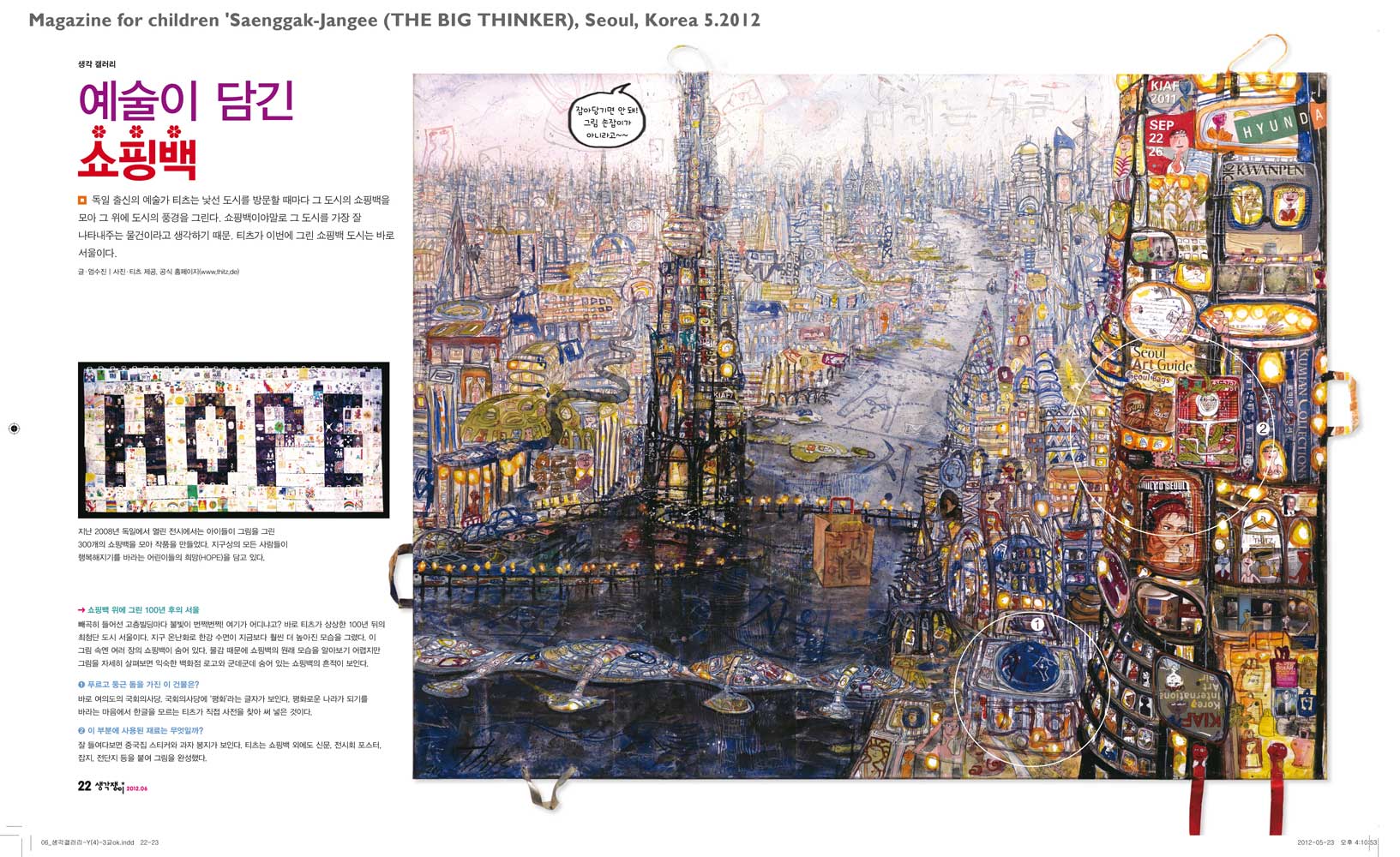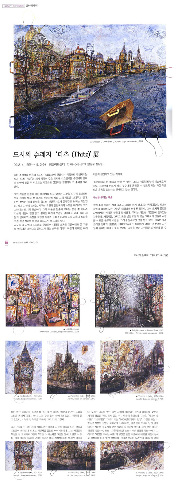 At such exhibitions, the viewers are practically doubly invited, once to participate in the interactive bag project and at the same time you are invited by my paintings to get to know the Thitz world and my artistic approach to bag and art. At every exhibition in a large urban gallery or museum I ask the curators if they can imagine to implement such a bag project during my exhibition. Of course, I would also like to realize such an interactive bag project during a museum exhibition in Korea.