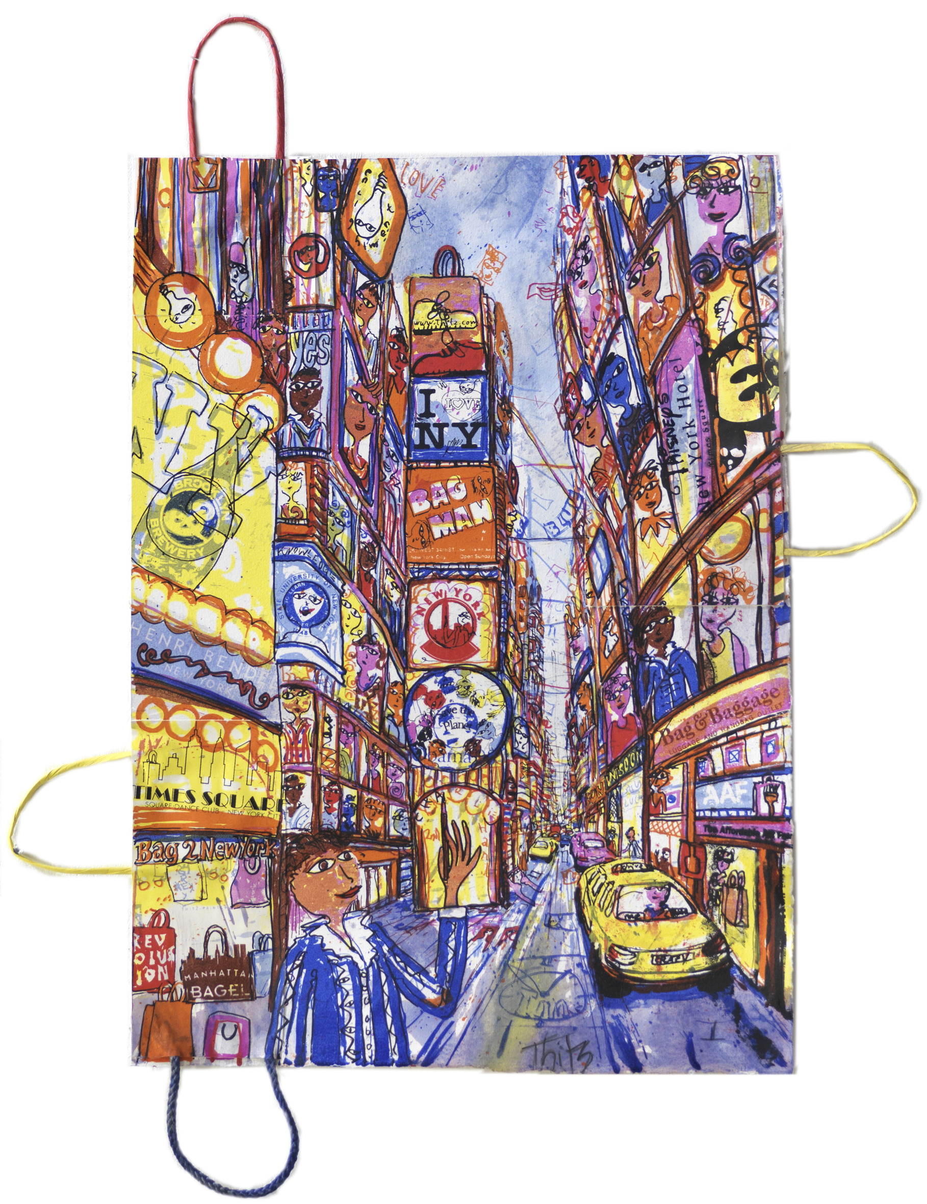 Künstlersiebdruck auf Tüten und Papier, Auflage 40, Abb.im Katalog "Cultural Centre of the City of Athens" (mit Übermalungen von 2006- 2014)