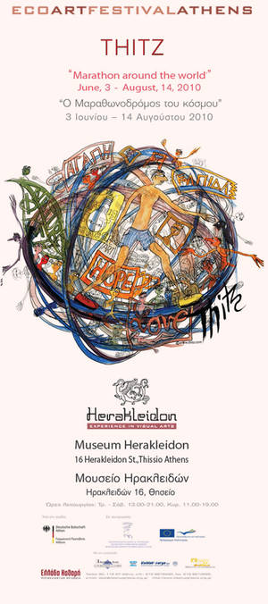 During his solo Show at the Museum Herakleidon, Athens (Greece) 3.6.2010 ? 14.8.2010. Thitz did continue with the Athens Bag Art Project . The Environmental Organization “Clean up Greece” and the Herakleidon Museum organized the Thitz Exhibition “Marathon around the World” . which was also supported by the Greek Ministry of Culture and under the auspices of the German Embassy in Athens.